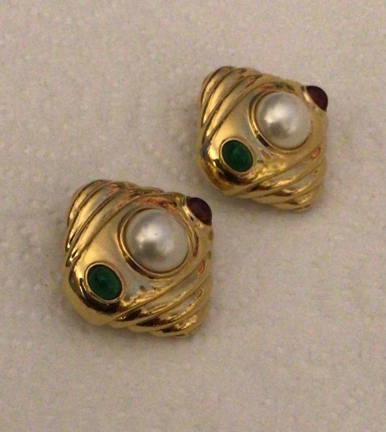 unmarked Jewelry Ruby Red Emerald Green Jewel Tone Egyptian Clip On