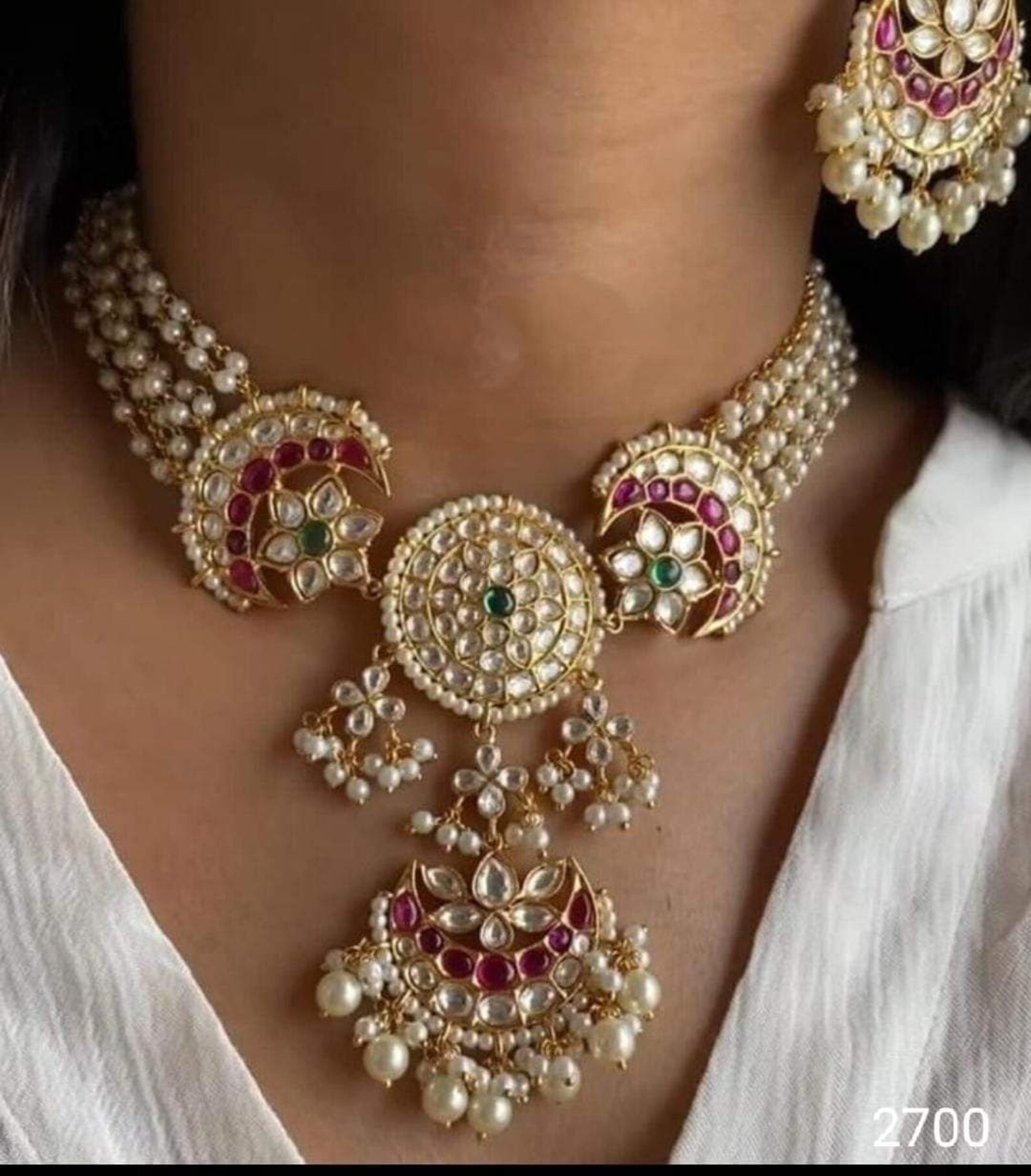 Buy High Quality Ruby Red Emerald Green Pearl Choker Necklace Set With
