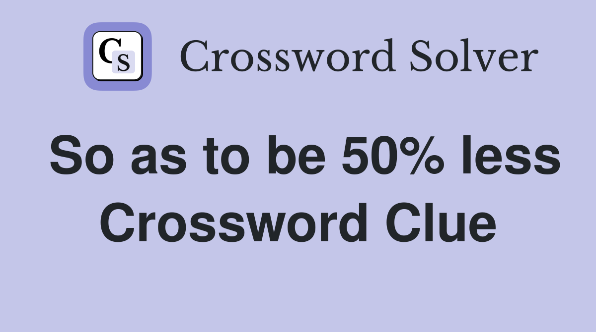 So as to be 50% less Crossword Clue Answers Crossword Solver