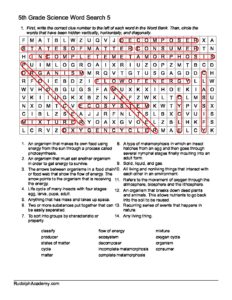Grade 5 Science Word Search 5 Answers Rudolph Academy Free