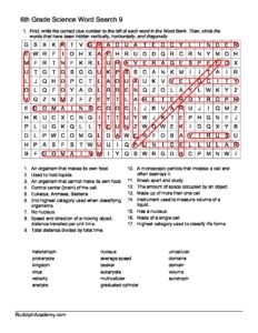 Grade 6 Science Word Search 8 Answers Rudolph Academy
