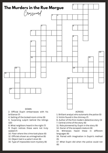 Here are some of the images for Rue Morgue Murderer Crossword that we found in our website database.