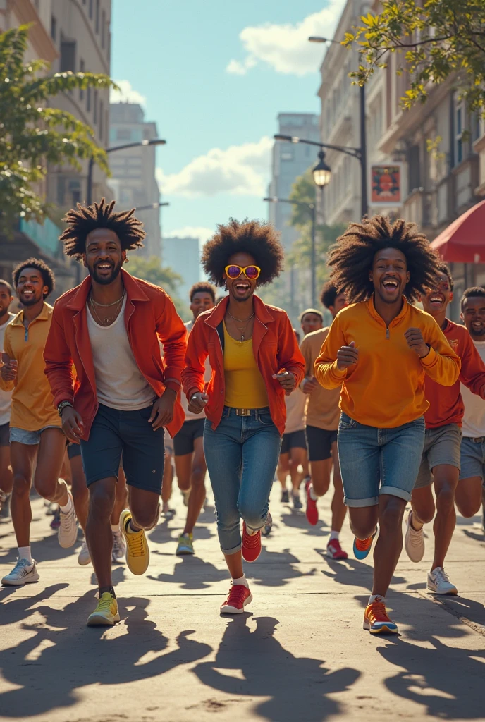 Happy Run un peuple noir entrain de courir dans la rue SeaArt AI