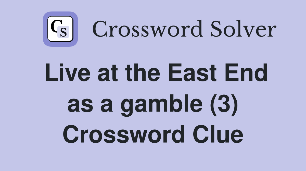 Live at the East End as a gamble (3) Crossword Clue Answers