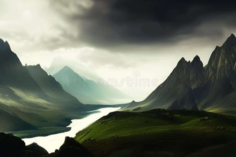 Premium AI Image A dramatic thunderstorm over a rugged mountain range