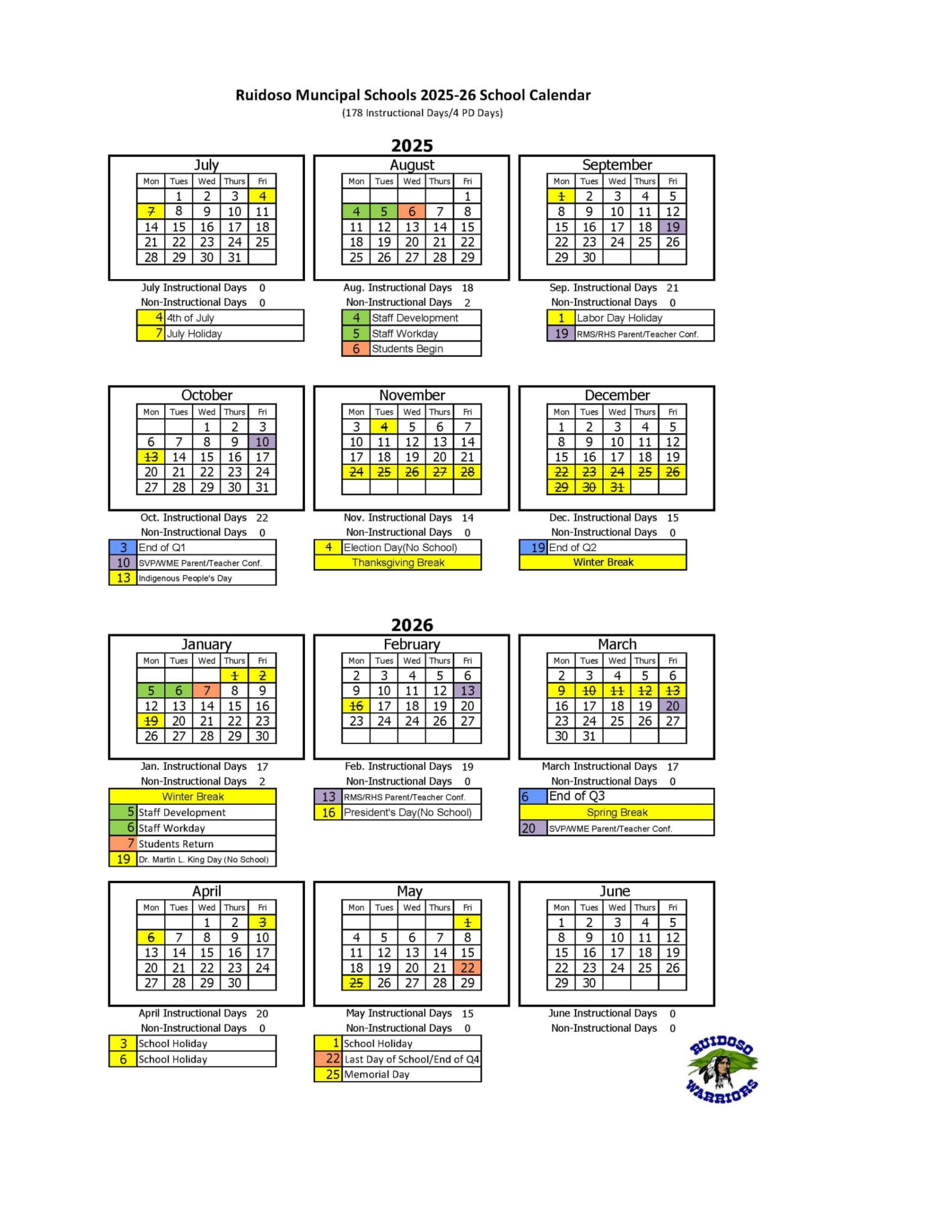 Ruidoso Municipal Schools NM Calendar 25 26 Revised pdf EduCounty