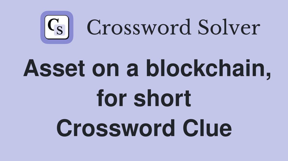 Asset on a blockchain for short Crossword Clue Answers Crossword
