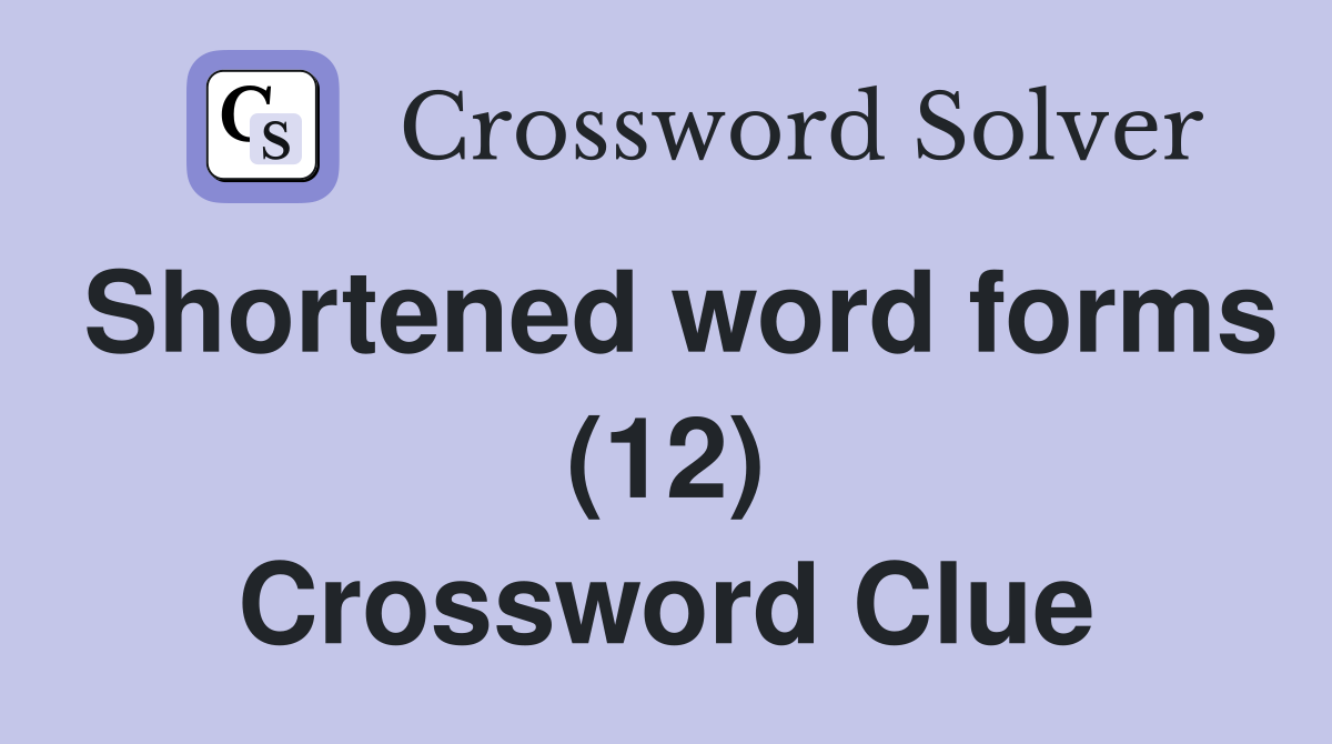 Shortened word forms (12) Crossword Clue Answers Crossword Solver