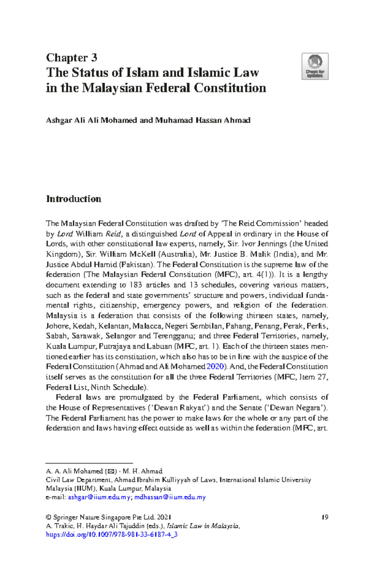 Ali Mohamed Ahmad 2021 Chapter The Status Of Islam And Islamic Law I