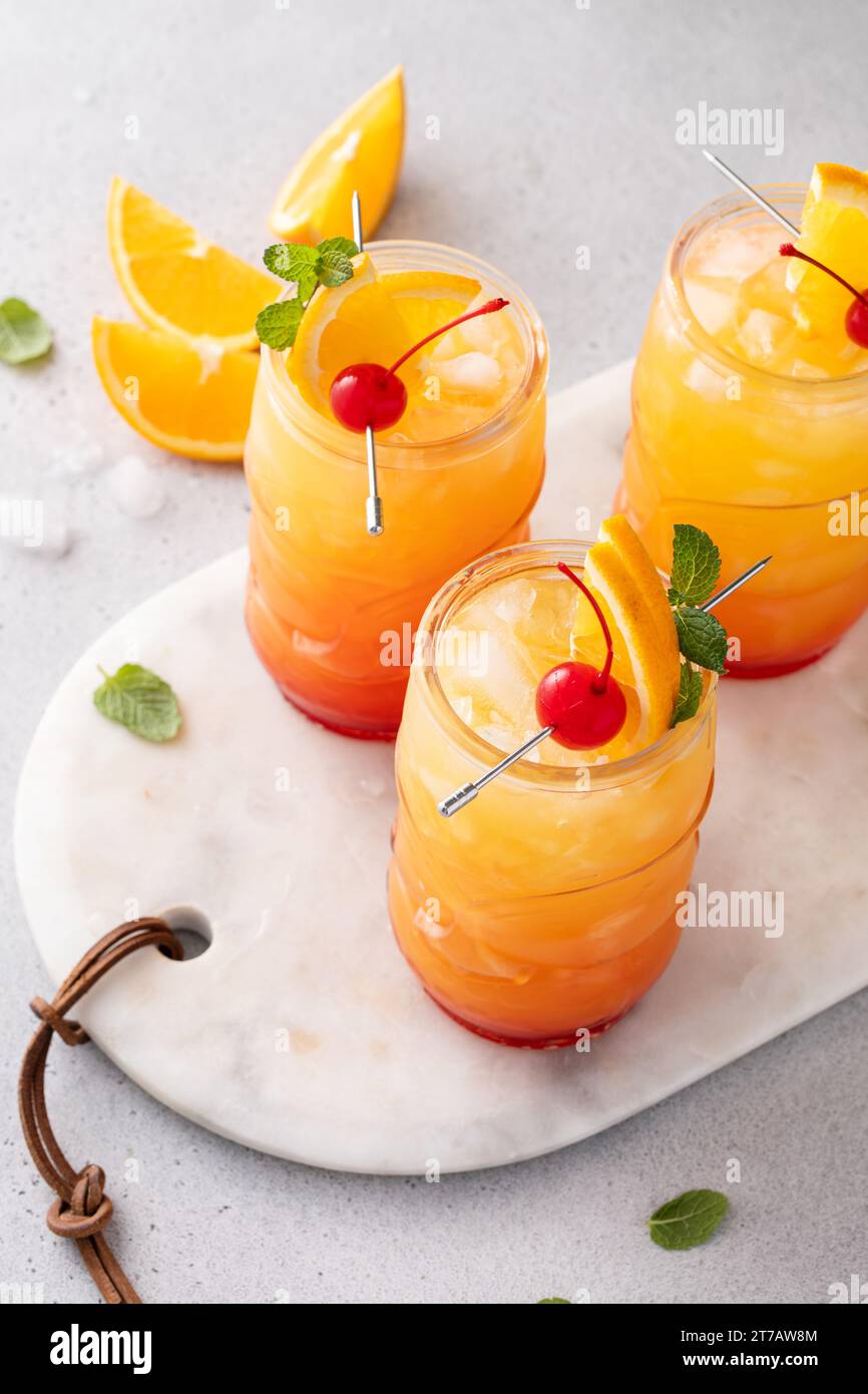 Hurricane cocktail in tiki glasses tropical rum based cocktail with