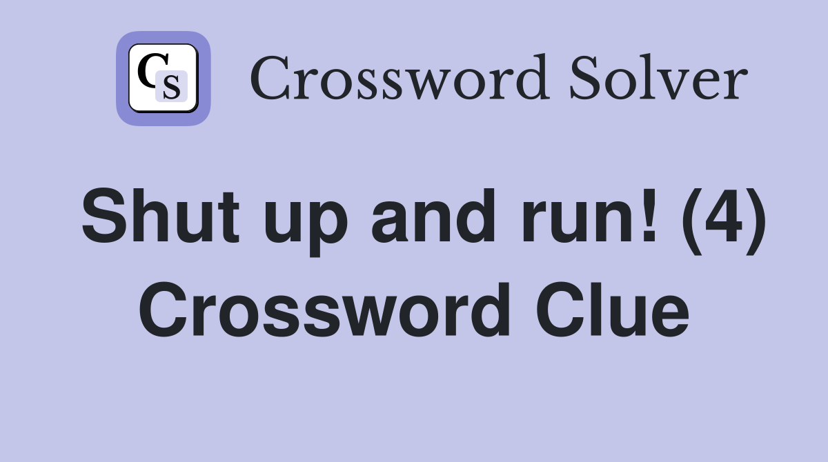 Shut up and run (4) Crossword Clue Answers Crossword Solver