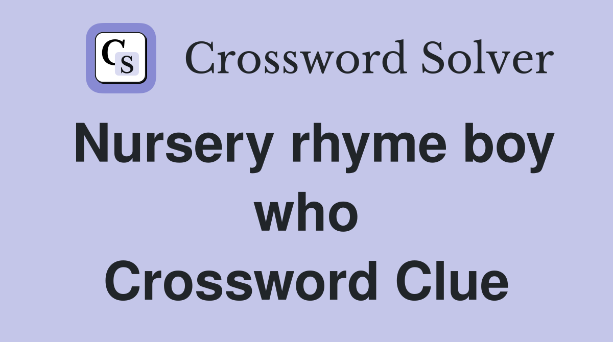 Nursery rhyme boy who stole a pig and away he run Crossword Clue