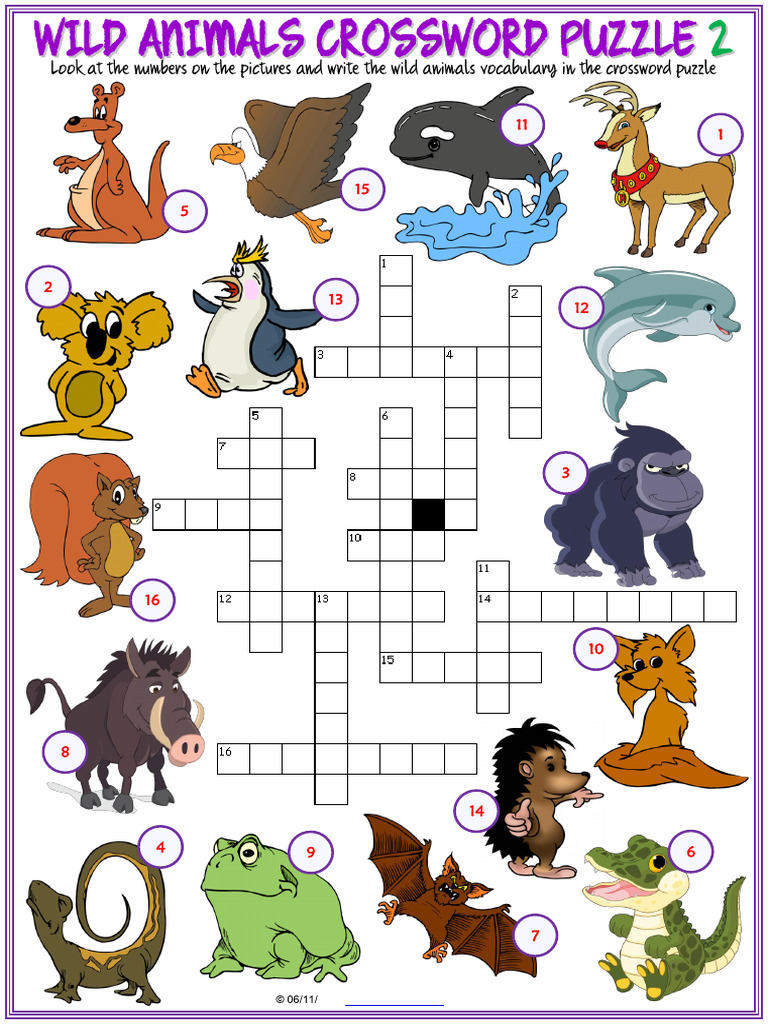Wild Animals Vocabulary Esl Crossword Puzzle Worksheets For Kids Trang