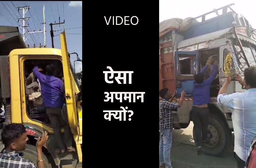 एमपी में ट्रक ड्राइवरों को जूते चप्पलों की माला पहना रहे यूनियन के लोग