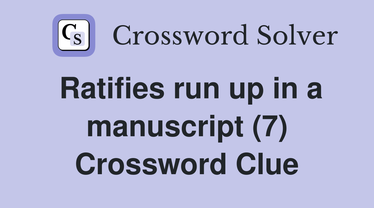 Ratifies run up in a manuscript (7) Crossword Clue Answers