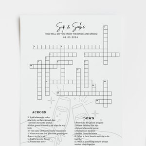 Custom Crossword Puzzle Wedding Template Sip and Solve Wedding
