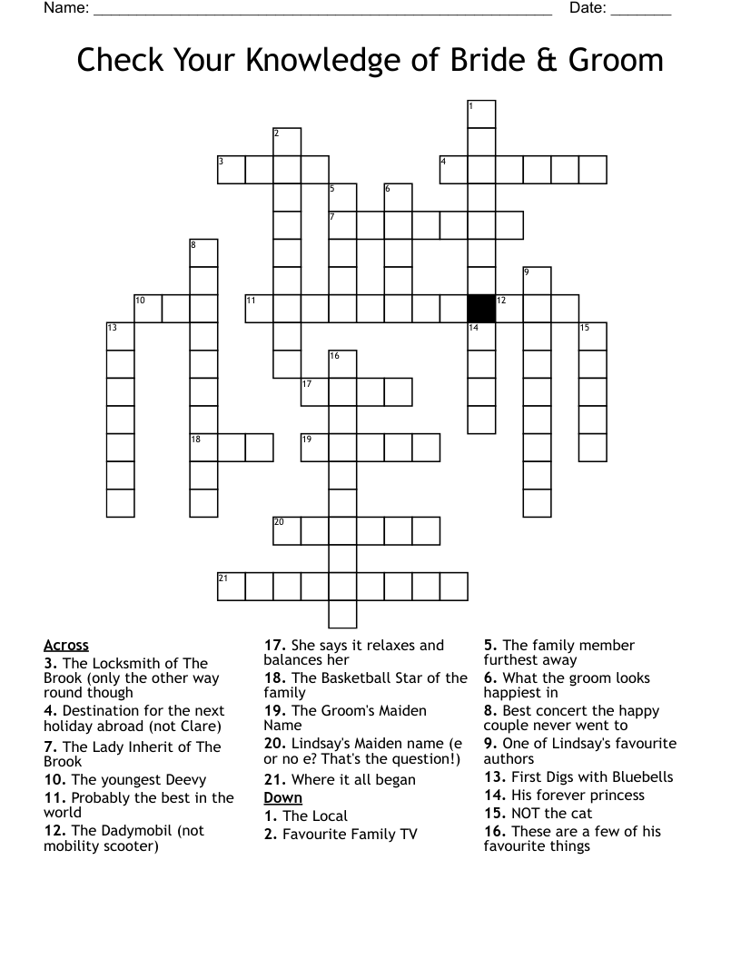 Wedding Crossword Challenge Test Your Knowledge of the Bride Groom