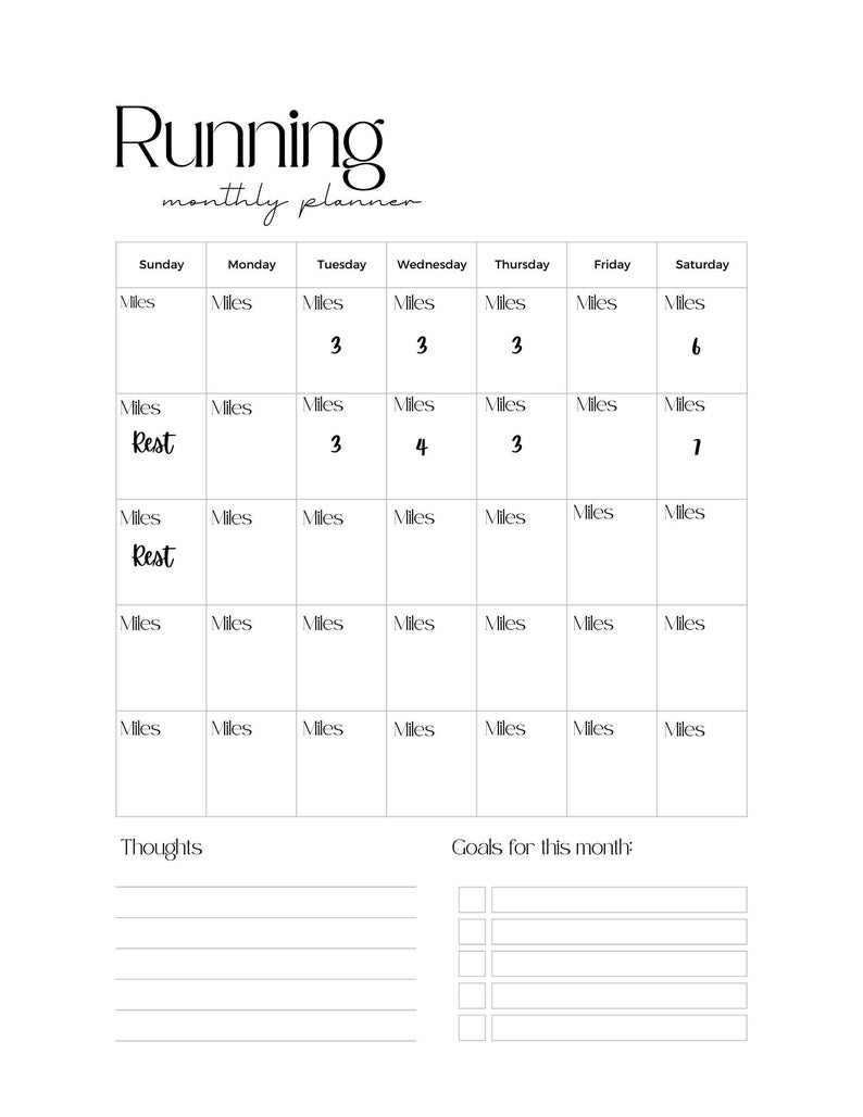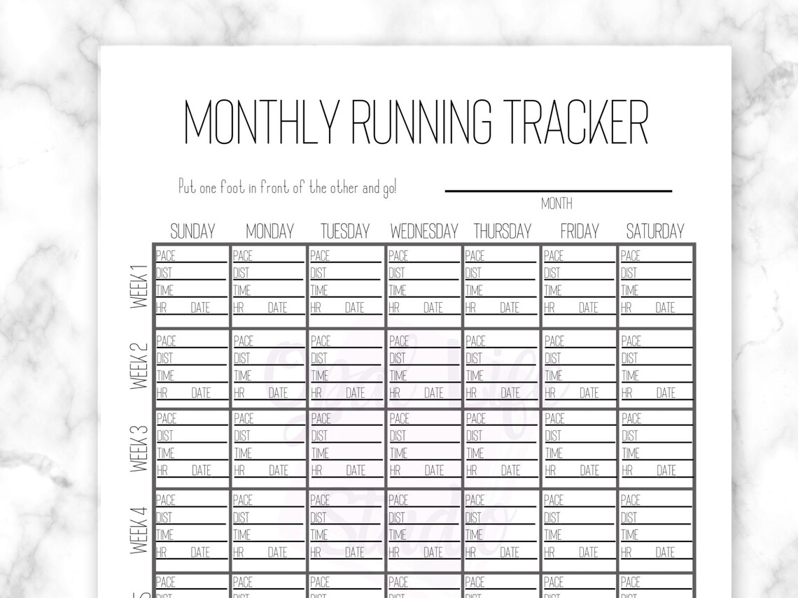 Printable Monthly Running Tracker Minimalist Run Planner / Log Form a