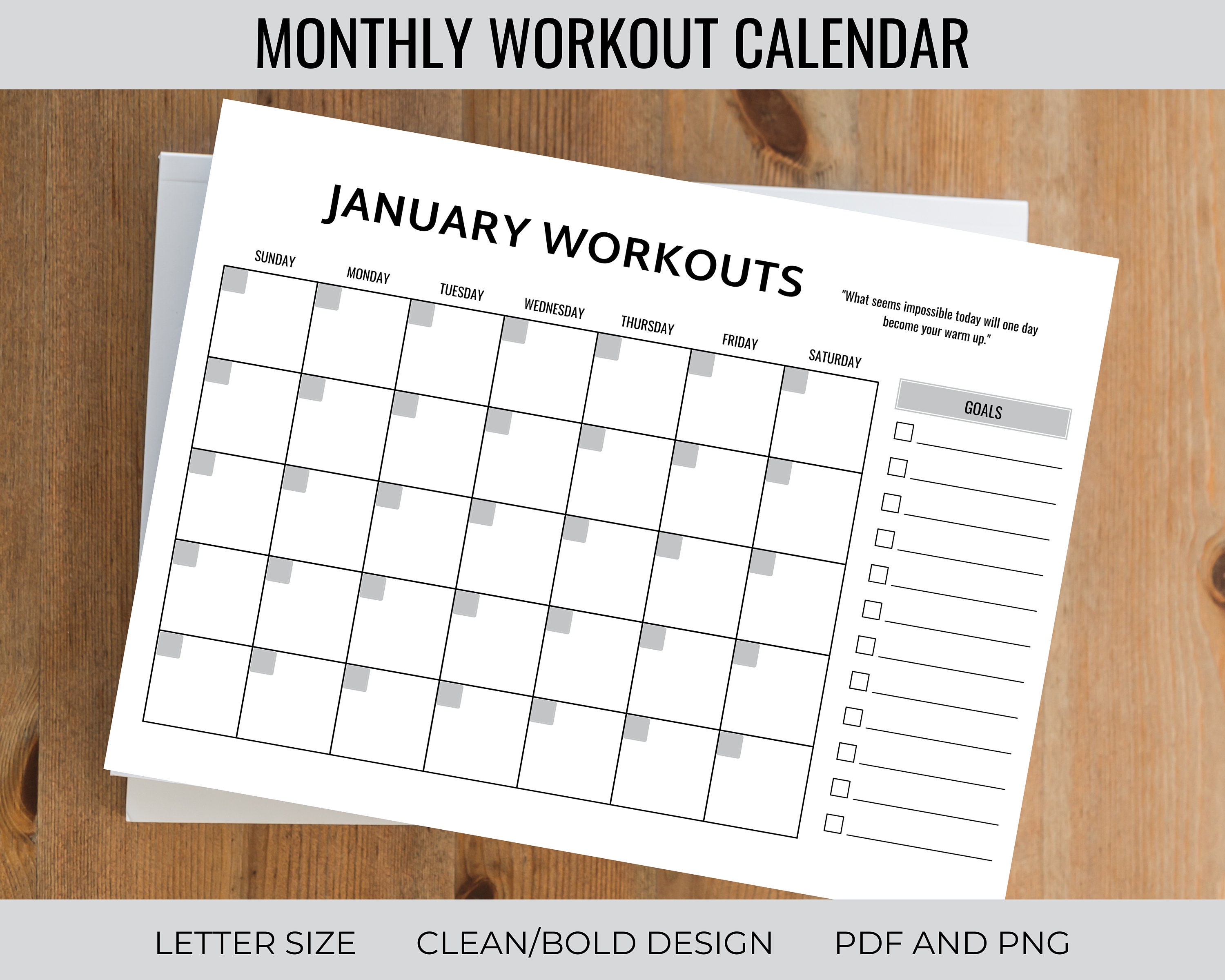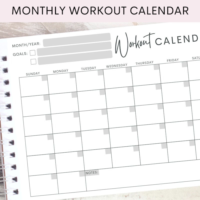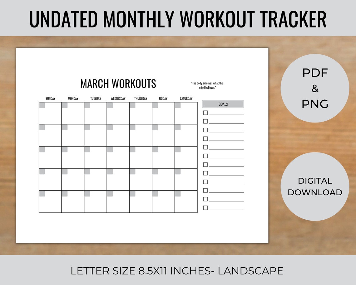 Undated Workout Calendar Printable Fitness Planner Gym Tracker