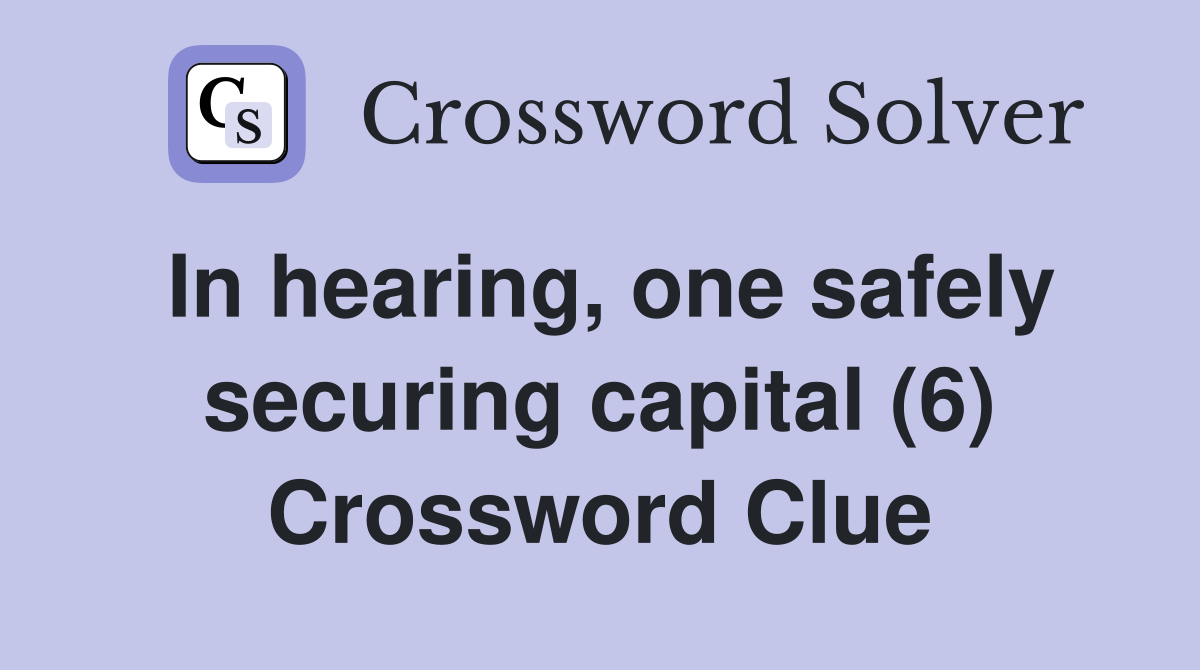 In hearing one safely securing capital (6) Crossword Clue Answers