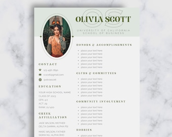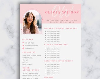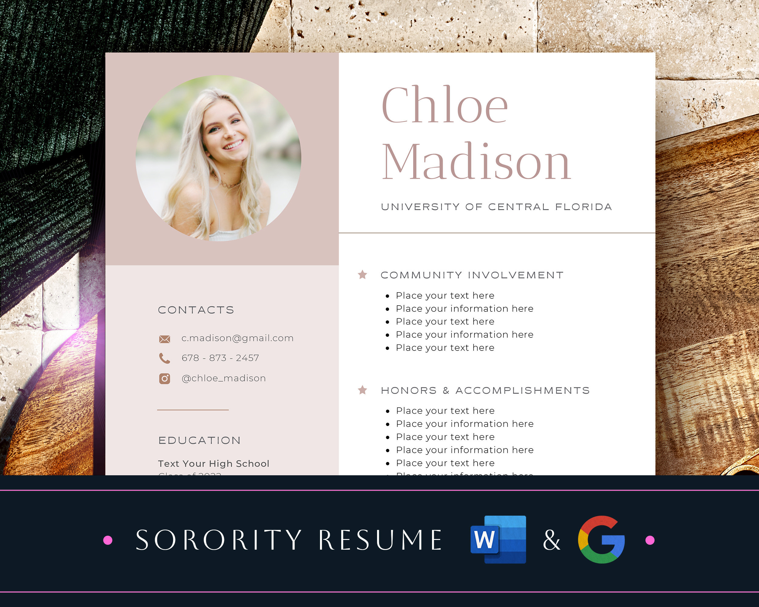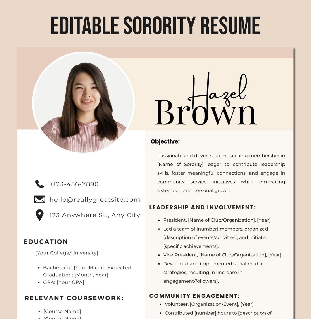 Sorority Resume Template With Photo Editable Rush Resume Template