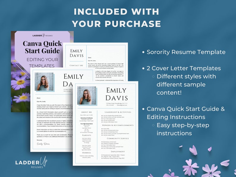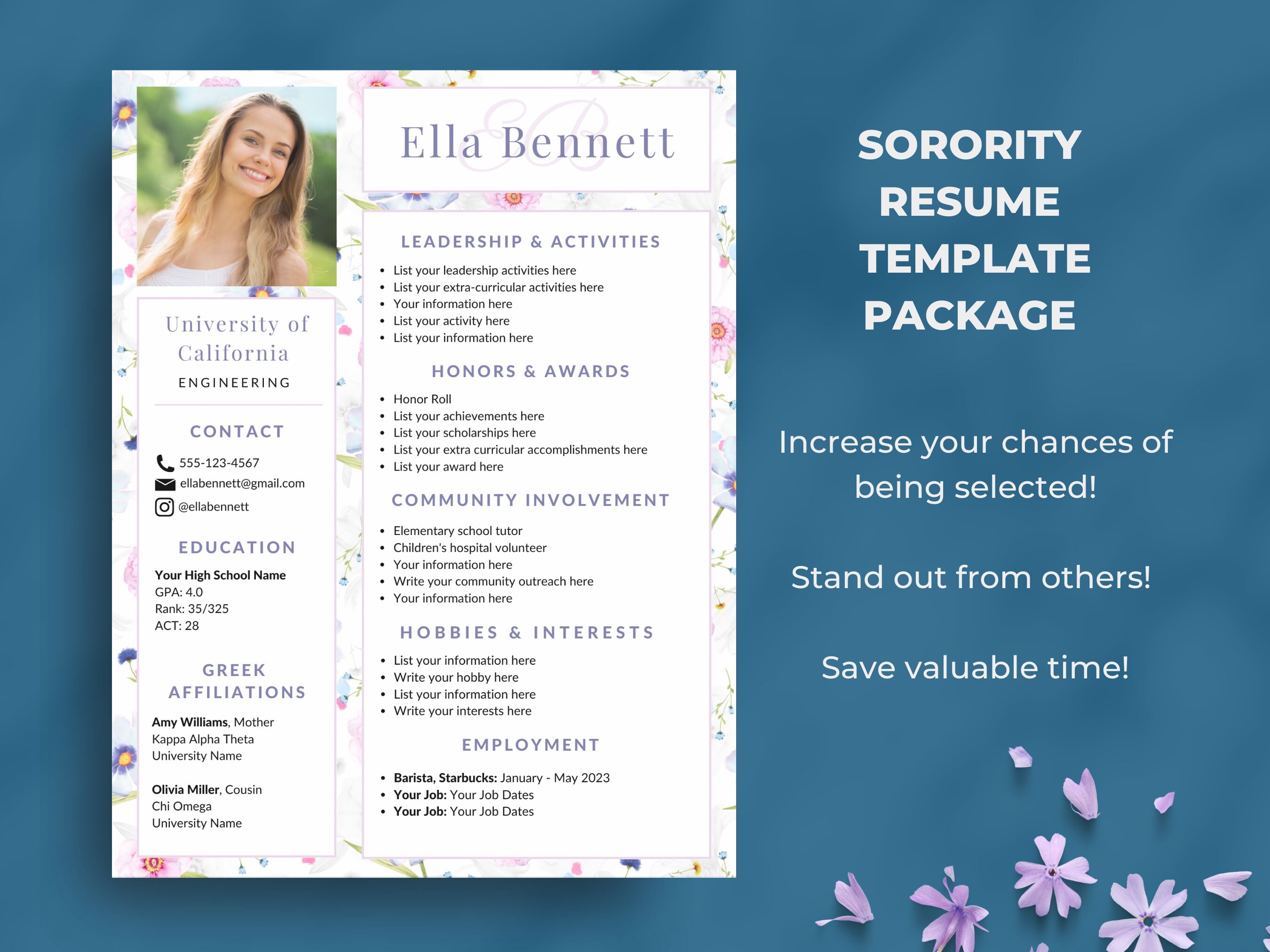 Sorority Resume Template With Photo Editable Floral Rush Resume