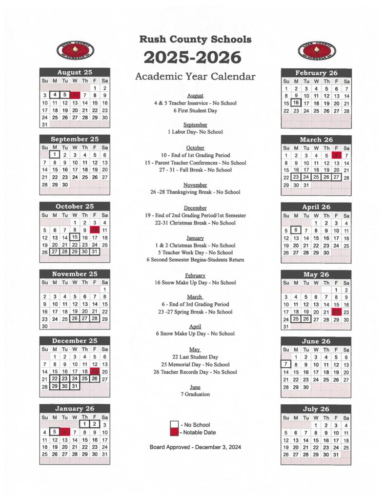2025 2026 School Year Calendar Rush City Public Schools