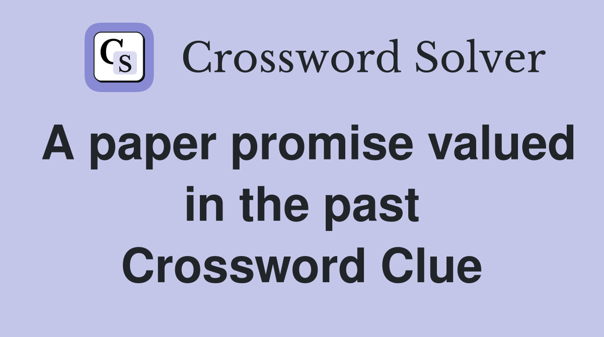 A paper promise valued in the past Crossword Clue Answers Crossword