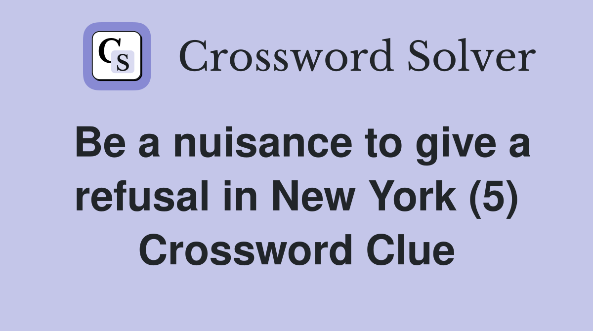 Be a nuisance to give a refusal in New York (5) Crossword Clue