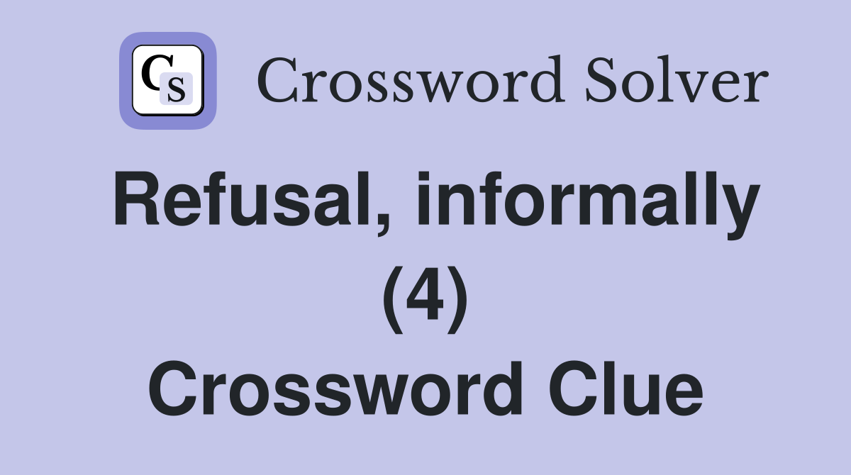 Refusal informally (4) Crossword Clue Answers Crossword Solver