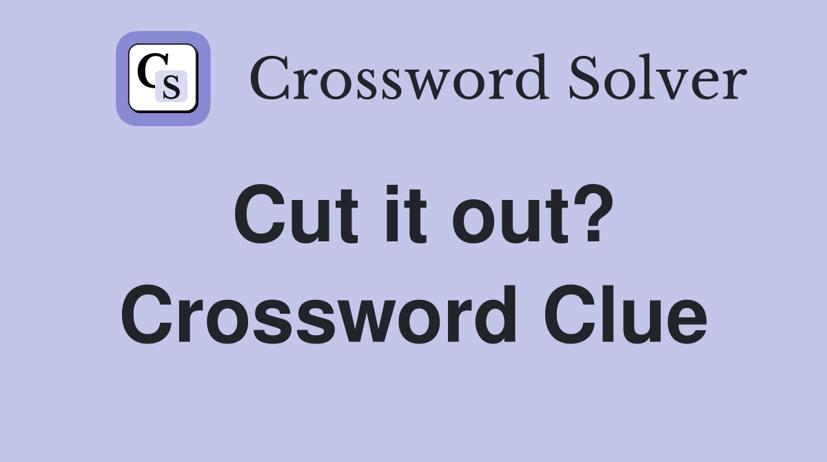 Cut it out? Crossword Clue Answers Crossword Solver