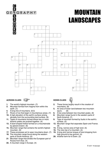 Geography Crossword Puzzle Mountain Landscapes Teaching Resources