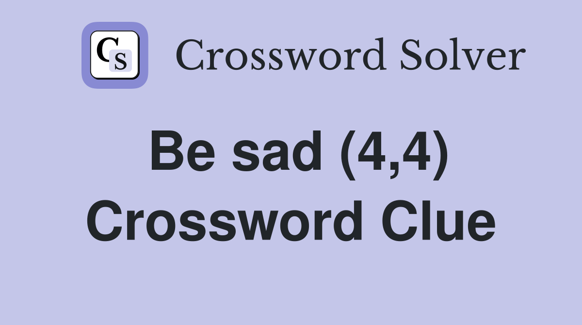 Be sad (4 4) Crossword Clue Answers Crossword Solver