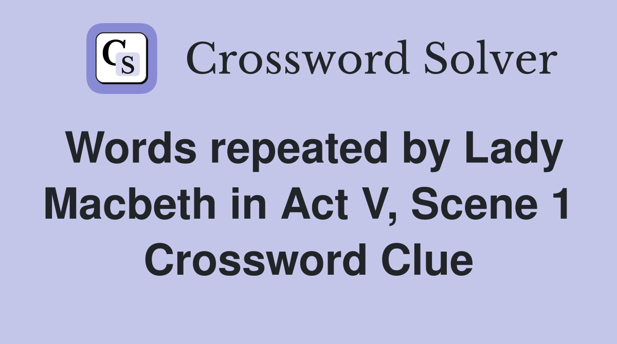 Words repeated by Lady Macbeth in Act V Scene 1 Crossword Clue