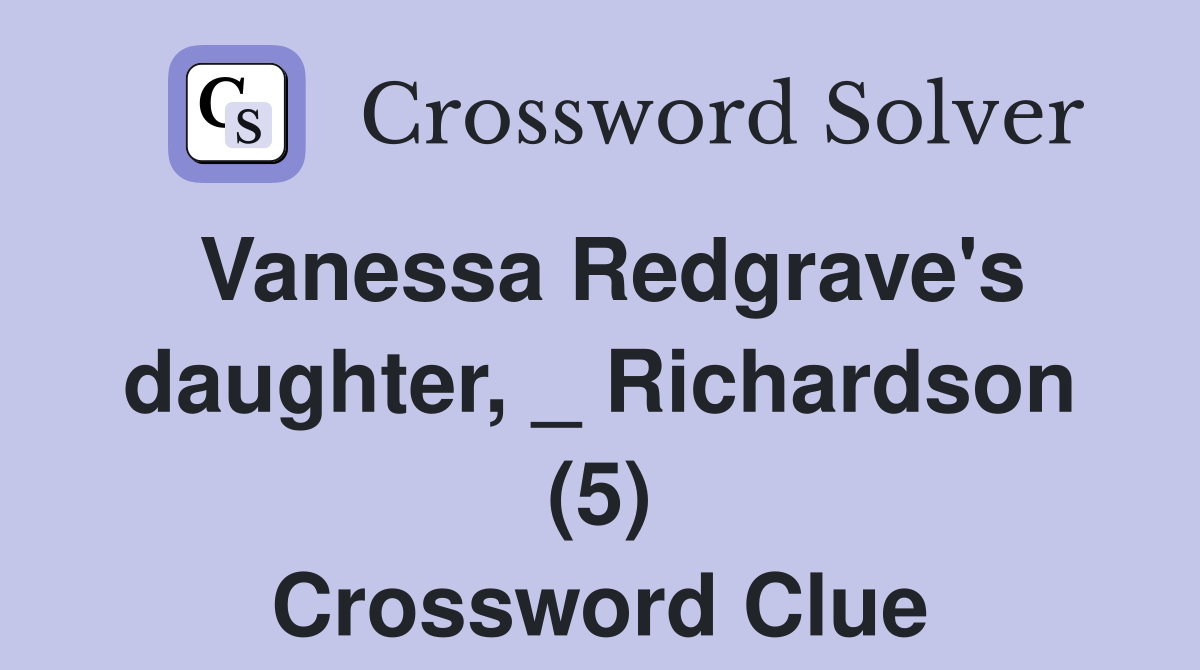 Vanessa Redgrave #39 s daughter Richardson (5) Crossword Clue Answers