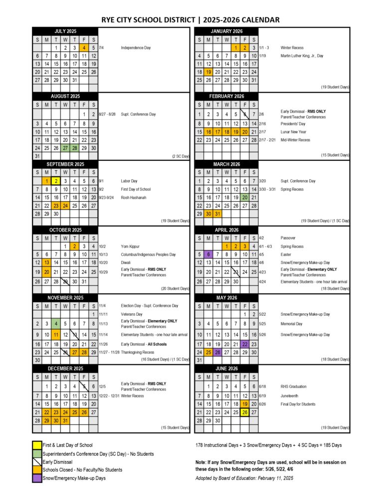 Rye City School District Calendar 25 26 pdf revised EduCounty