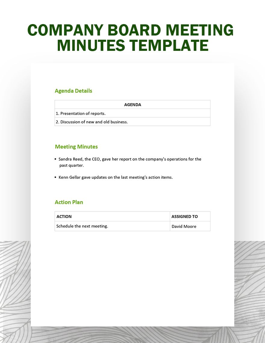 Company Board Meeting Minutes Template Google Docs Word Apple Pages