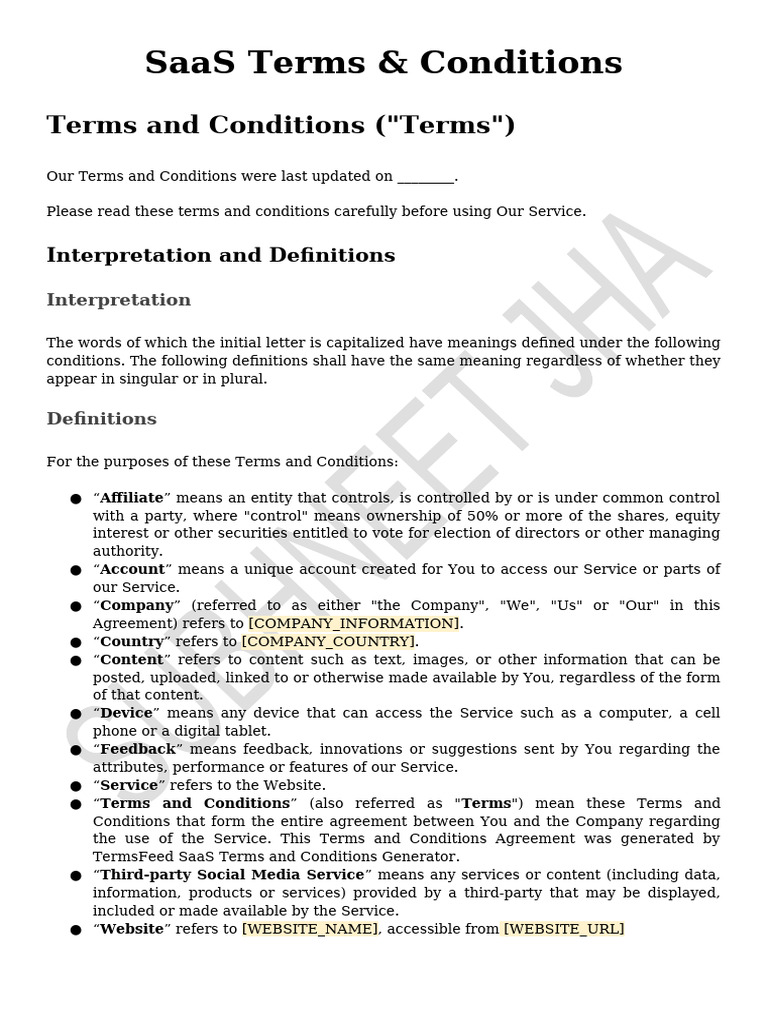 SaaS Terms Conditions Template TermsFeed