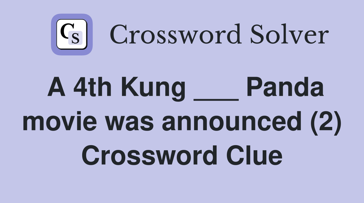A 4th Kung Panda movie was announced (2) Crossword Clue Answers