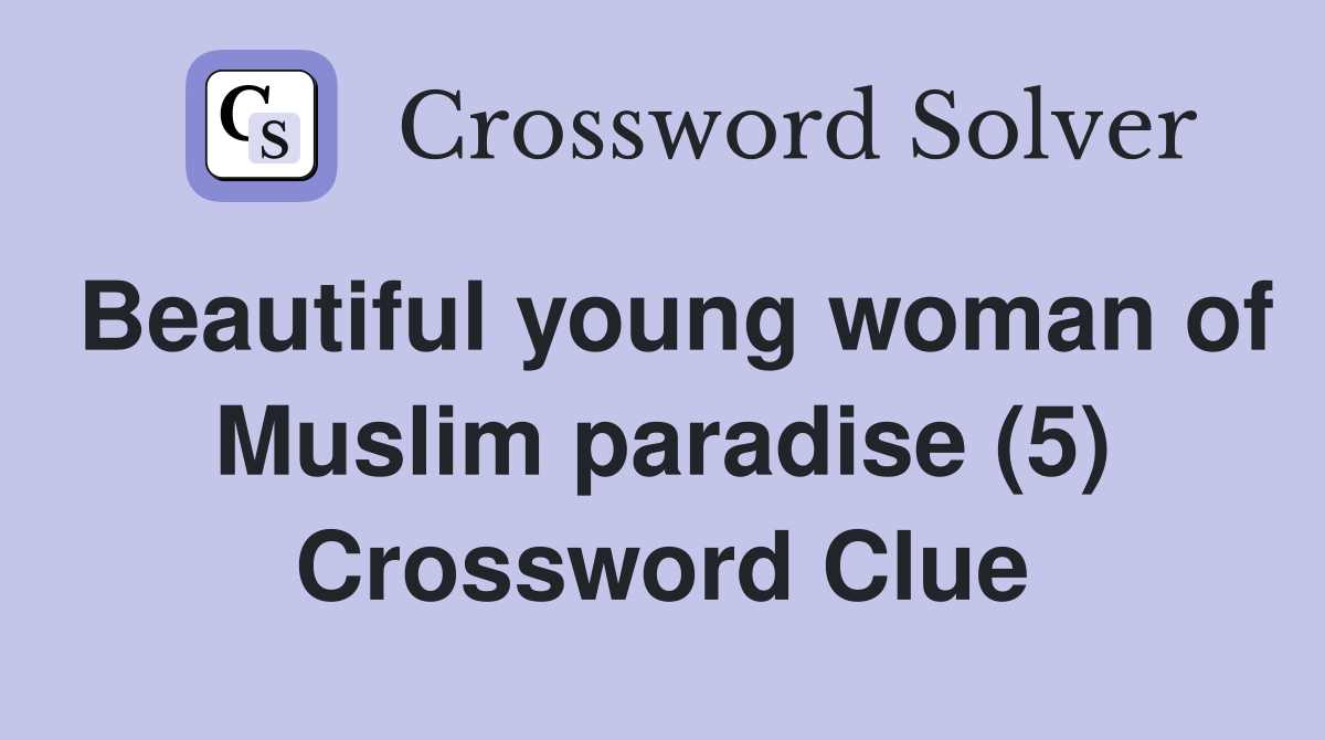 Beautiful young woman of Muslim paradise (5) Crossword Clue Answers