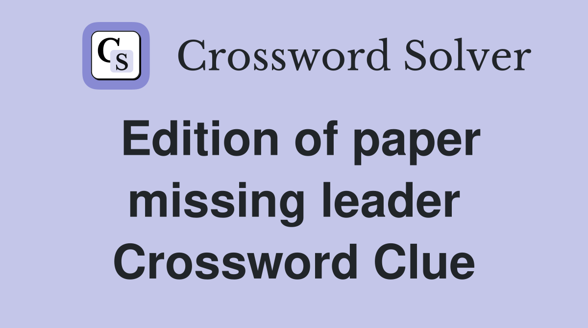 Edition of paper missing leader Crossword Clue Answers Crossword Solver