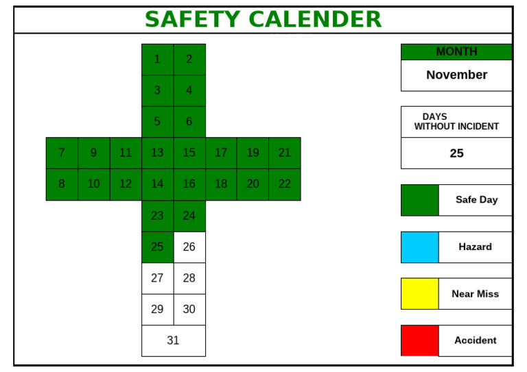 Downloadable Safety Cross Calendar Template for Effective Planning