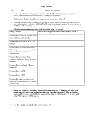 Fillable Online Safety Huddle Template Ohio Hospital Association Fax