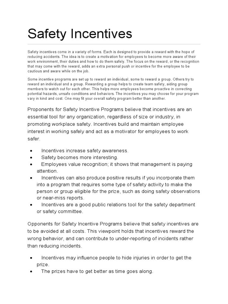 Safety Incentives PDF Incentive Occupational Safety And Health