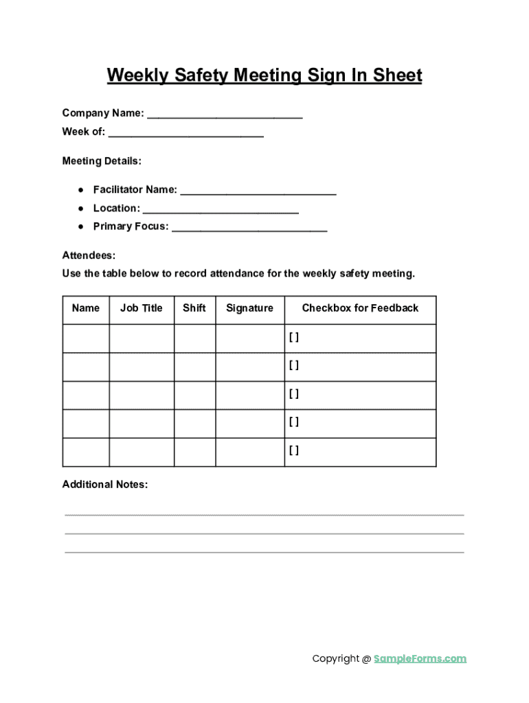 Free Safety Meeting Sign in Sheet Template PDF Word eForms