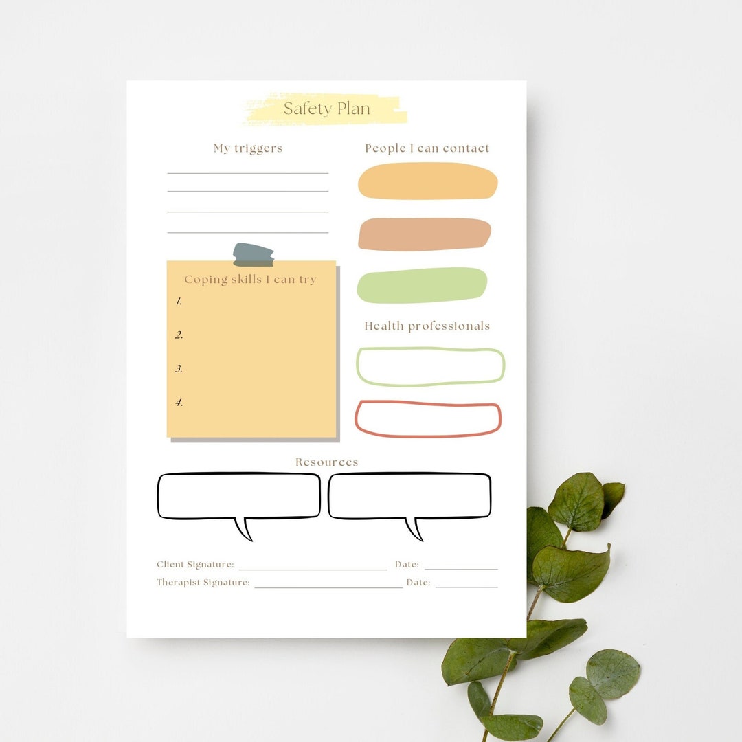 Therapist Safety Plan Template Etsy