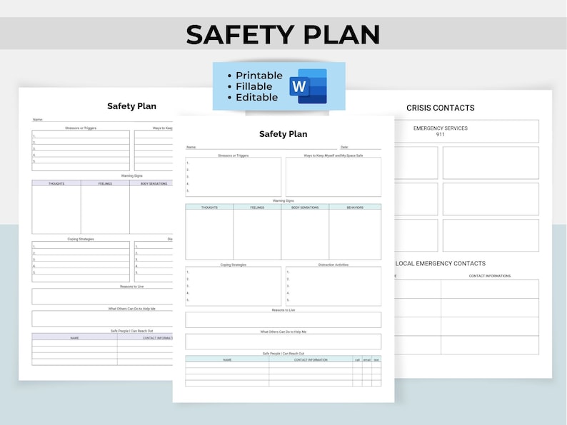 Safety Plan Template Crisis Plan Coping SkillsEtsy