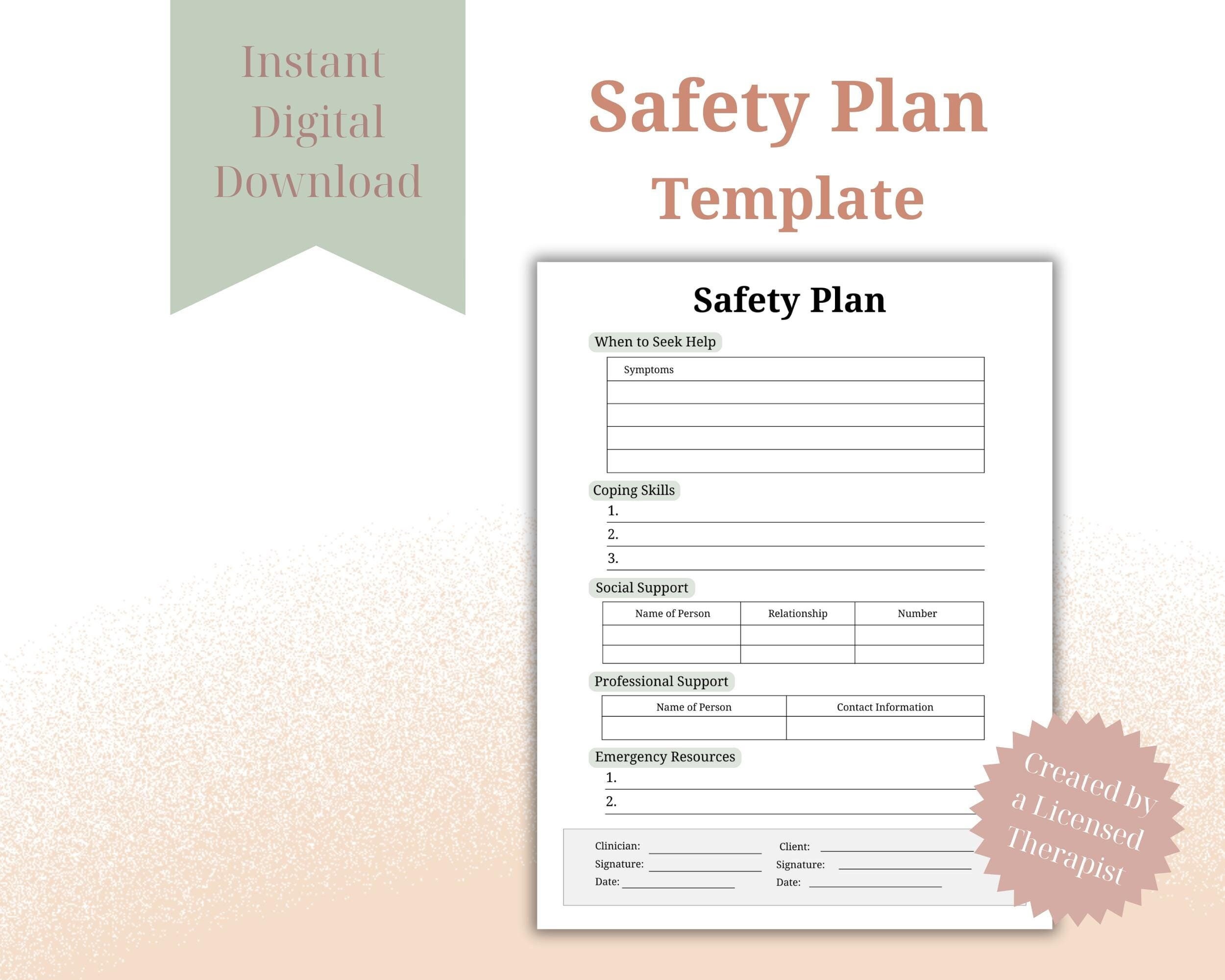 Safety Plan Template Crisis Plan Coping SkillsPrevention Etsy