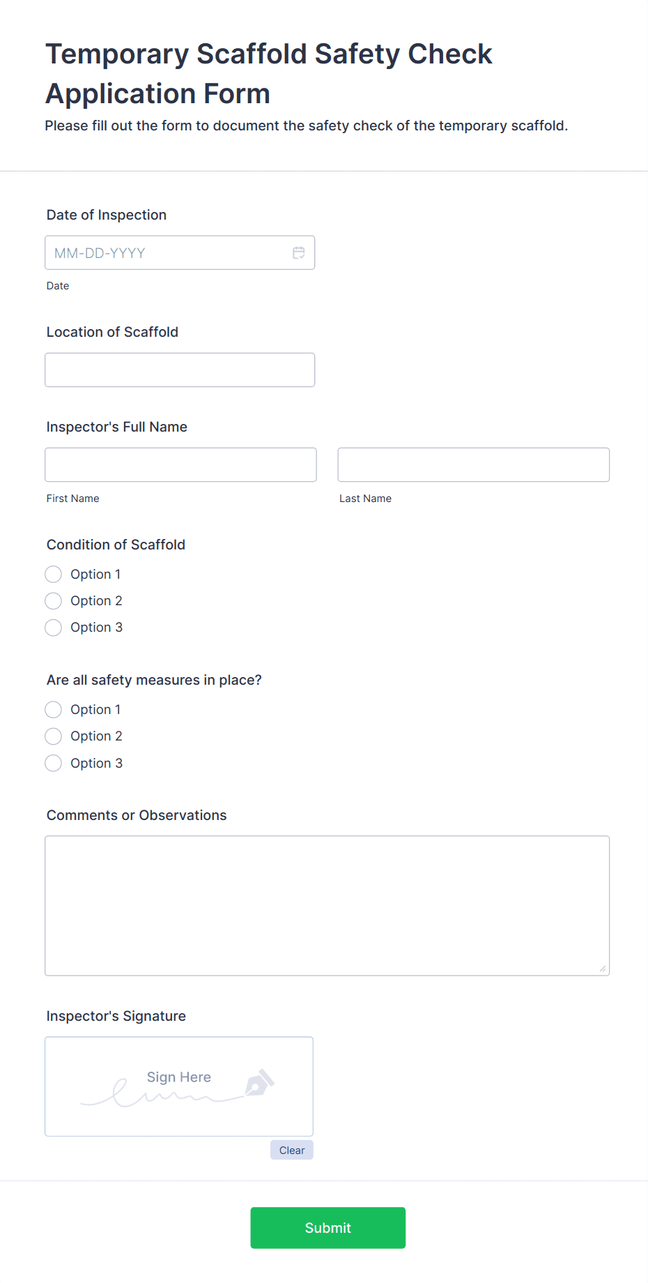 Temporary Scaffold Safety Check Application Form Template Jotform