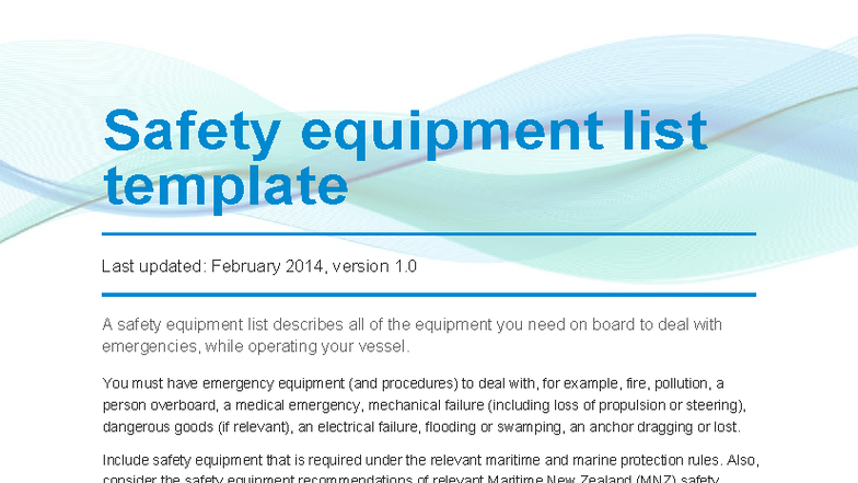 Safety Equipment List Template for Vessels Version 1 0 Studocu